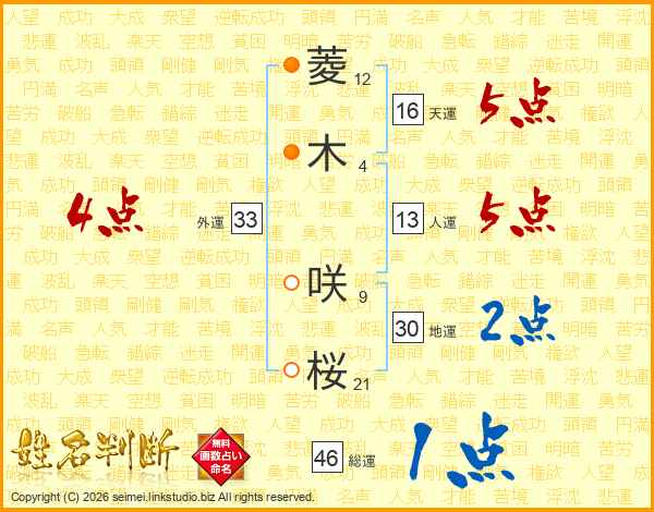 菱木咲桜さんの外運は33画の4点!