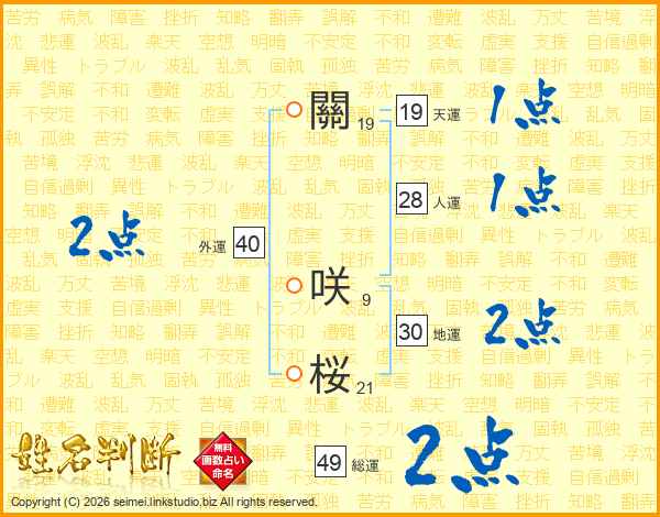 關咲桜さんの総運は49画の2点!