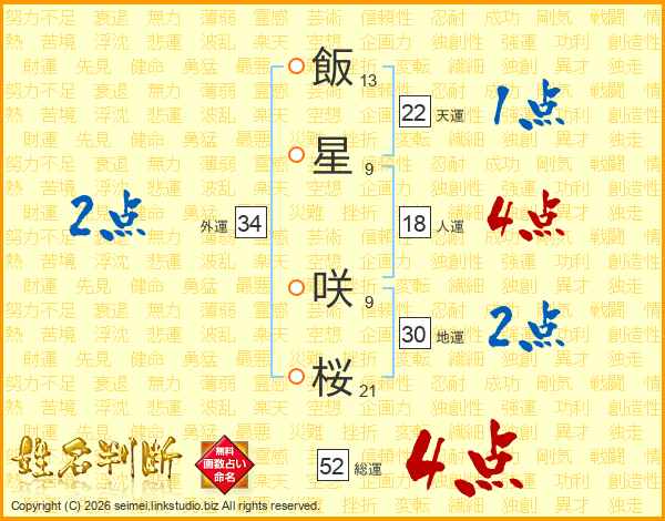 飯(13画)星(9画) 咲(9画)桜(21画)