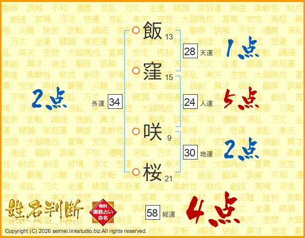 飯窪咲桜さんの総運は58画の4点!