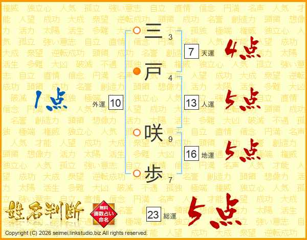 三戸咲歩さんの天運は7画の4点!