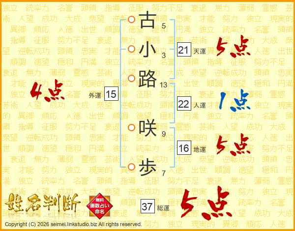 古小路咲歩さんの総運は37画の5点!
