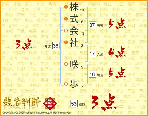 株式会社咲歩さんの総運は53画の3点!