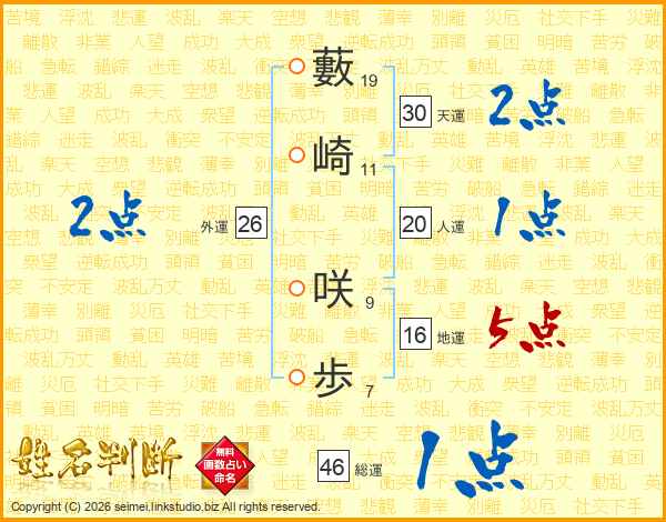 藪崎咲歩さんの人運は20画の1点!