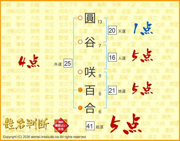 圓谷咲百合さんの総運は41画の5点!
