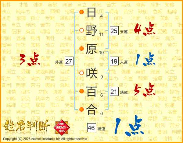 日(4画)野(11画)原(10画) 咲(9画)百(6画)合(6画)