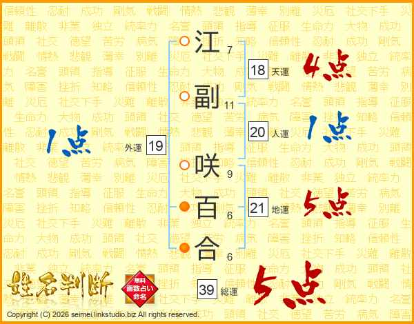 江副咲百合さんの総運は39画の5点!