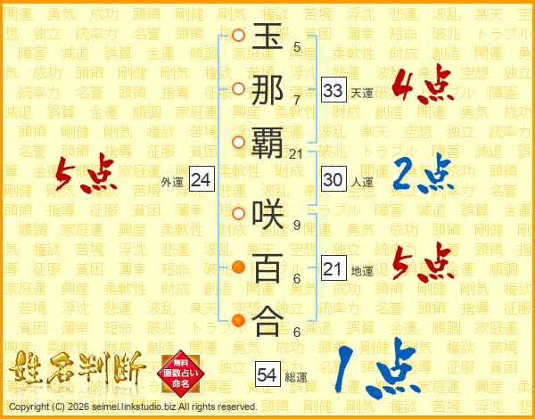 玉那覇咲百合さんの総運は54画の1点!