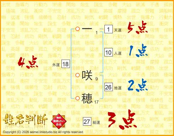一咲穂さんの総運は27画の3点!