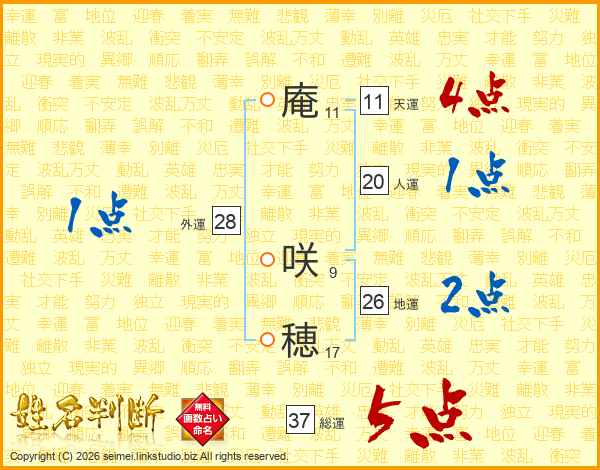 庵咲穂さんの天運は11画の4点!