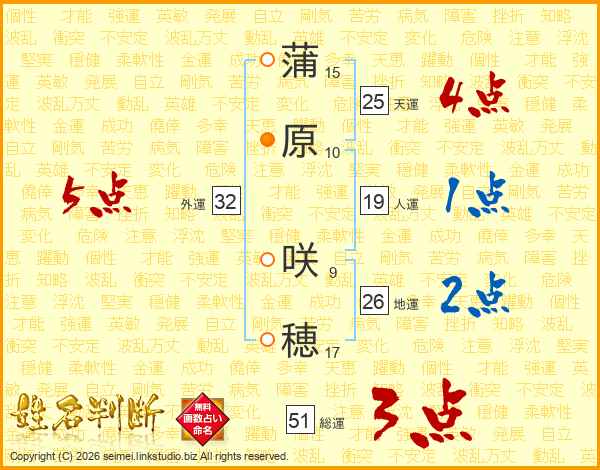 蒲原咲穂さんの外運は32画の5点!