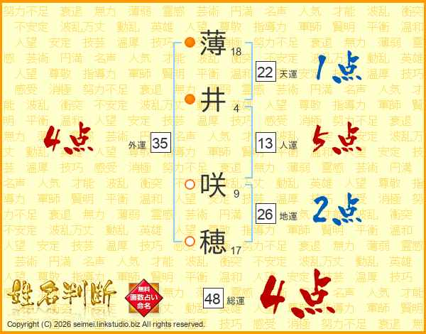 薄(18画)井(4画) 咲(9画)穂(17画)