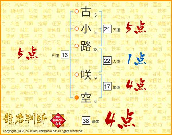古小路咲空さんの総運は38画の4点!