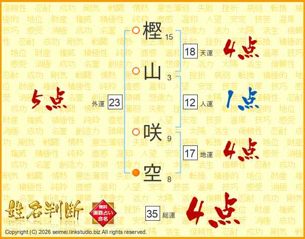 樫山咲空さんの総運は35画の4点!