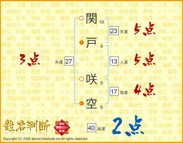 関戸咲空さんの天運は23画の5点!