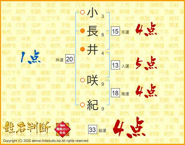 小長井咲紀さんの総運は33画の4点!