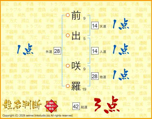 前出咲羅さんの総運は42画の3点!