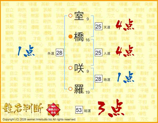 室橋咲羅さんの天運は25画の4点!