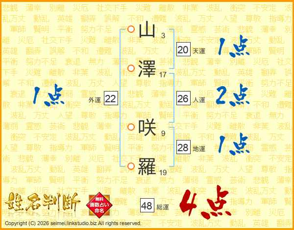 山澤咲羅さんの総運は48画の4点!