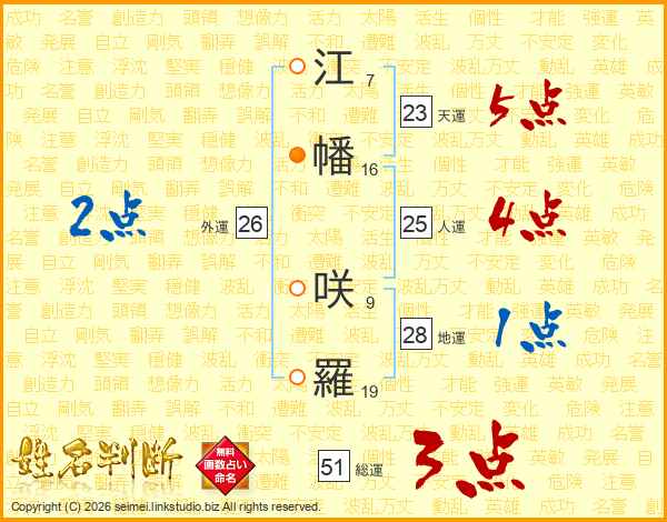 江幡咲羅さんの総運は51画の3点!