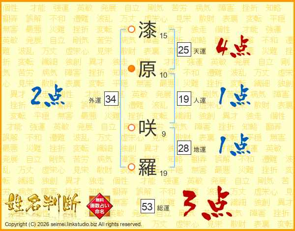 漆(15画)原(10画) 咲(9画)羅(19画)