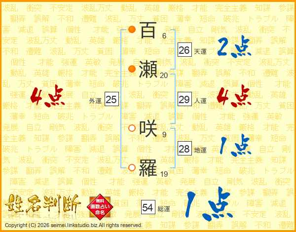 百瀬咲羅さんの天運は26画の2点!