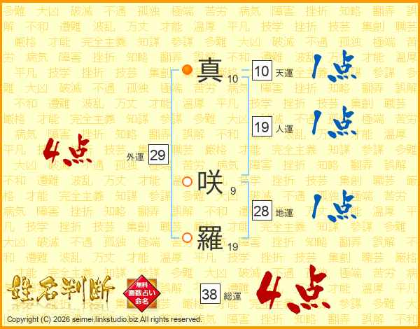 真咲羅さんの総運は38画の4点!