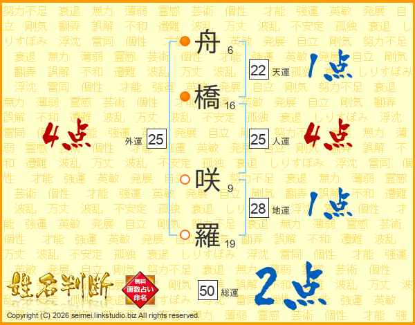 舟橋咲羅さんの人運は25画の4点!