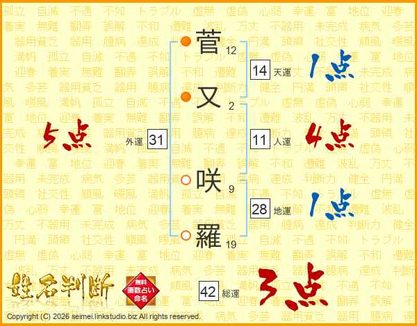 菅又咲羅さんの外運は31画の5点!