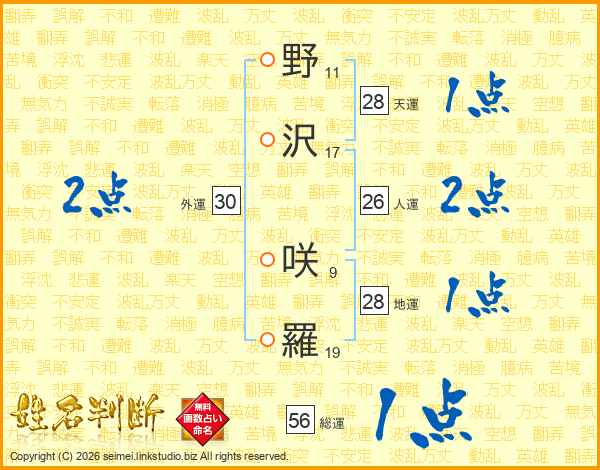 野沢咲羅さんの外運は30画の2点!