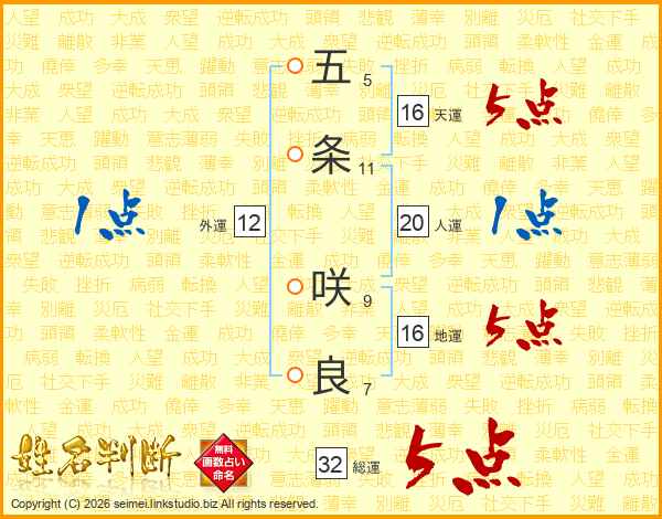 五条咲良さんの総運は32画の5点!