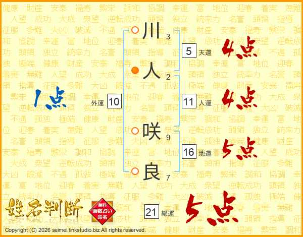 川人咲良さんの総運は21画の5点!