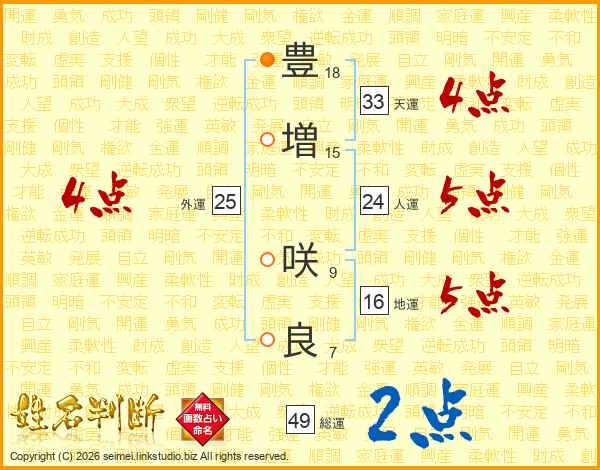 豊増咲良さんの天運は33画の4点!