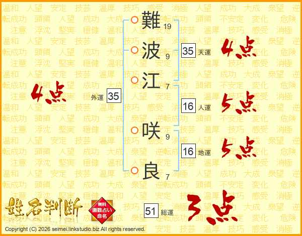 難(19画)波(9画)江(7画) 咲(9画)良(7画)