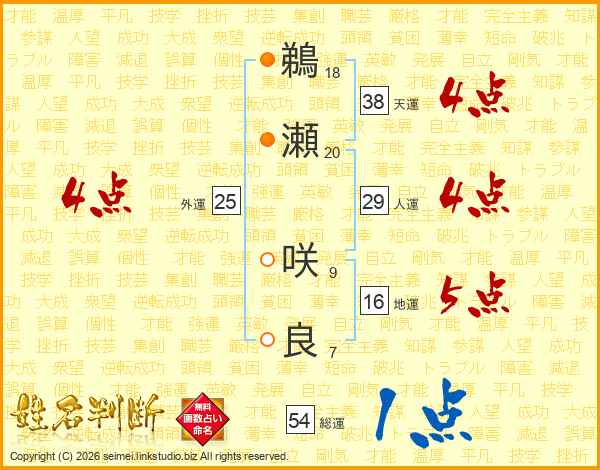 鵜瀬咲良さんの総運は54画の1点!