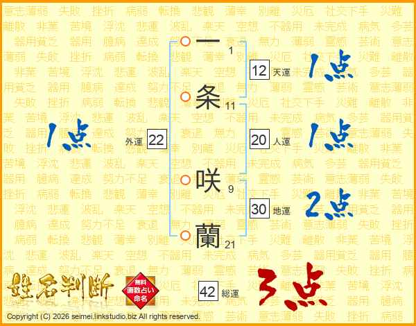 一条咲蘭さんの総運は42画の3点!