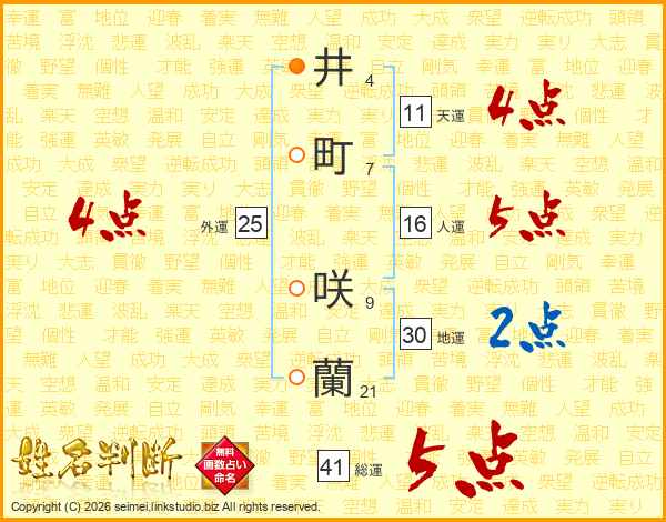 井(4画)町(7画) 咲(9画)蘭(21画)