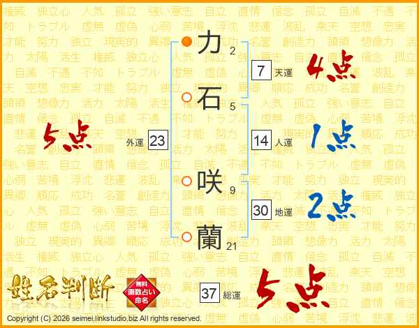 力石咲蘭さんの総運は37画の5点!
