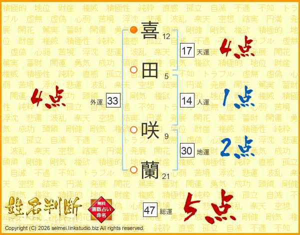 喜田咲蘭さんの外運は33画の4点!