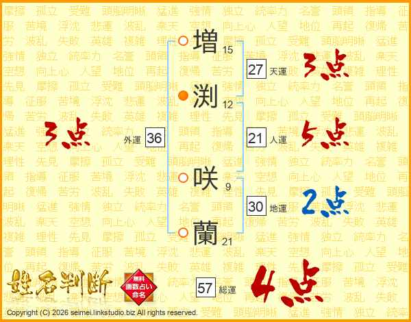 増渕咲蘭さんの外運は36画の3点!