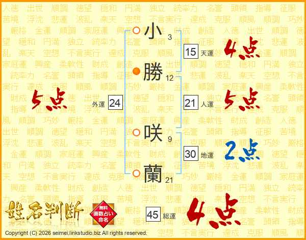 小勝咲蘭さんの総運は45画の4点!