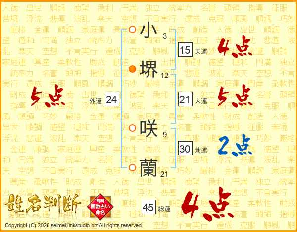 小堺咲蘭さんの総運は45画の4点!