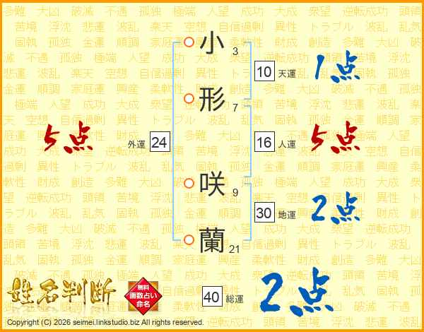 小(3画)形(7画) 咲(9画)蘭(21画)