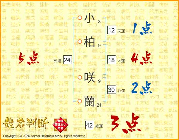 小柏咲蘭さんの総運は42画の3点!