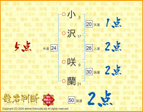 小沢咲蘭さんの総運は50画の2点!