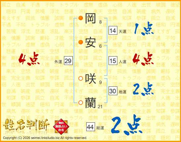 岡安咲蘭さんの総運は44画の2点!