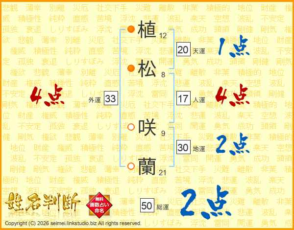 植松咲蘭さんの外運は33画の4点!