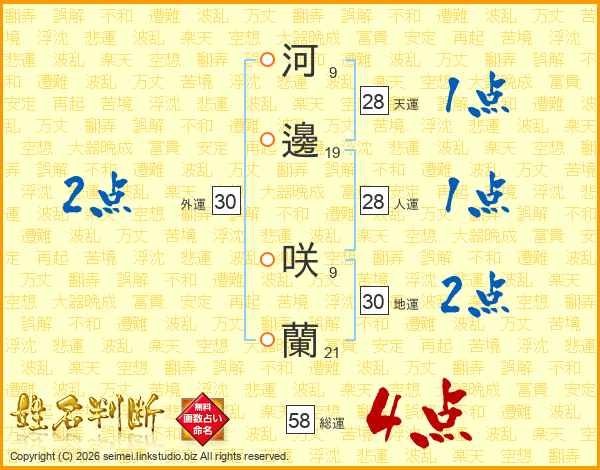 河邊咲蘭さんの総運は58画の4点!