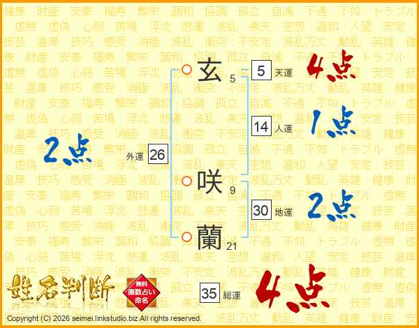 玄咲蘭さんの外運は26画の2点!