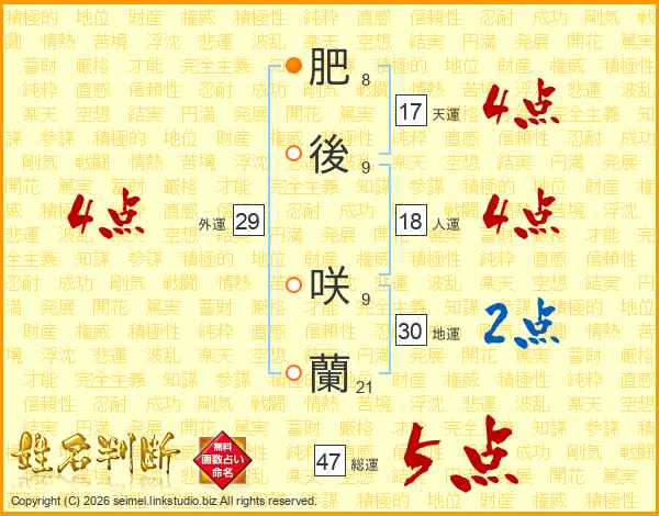肥後咲蘭さんの外運は29画の4点!